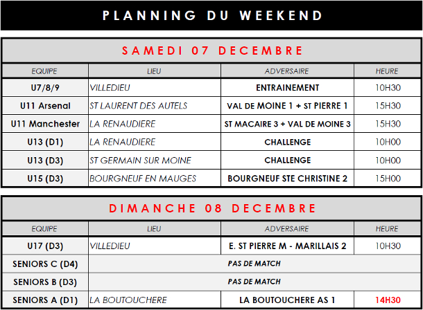 Planning 07 et 08 decembre