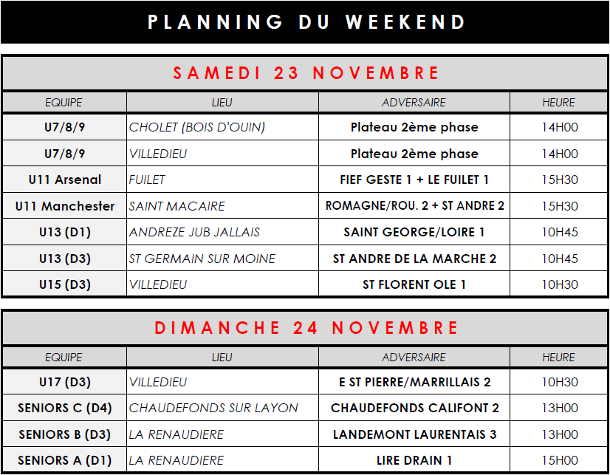 Planning 23 et 24 novembre